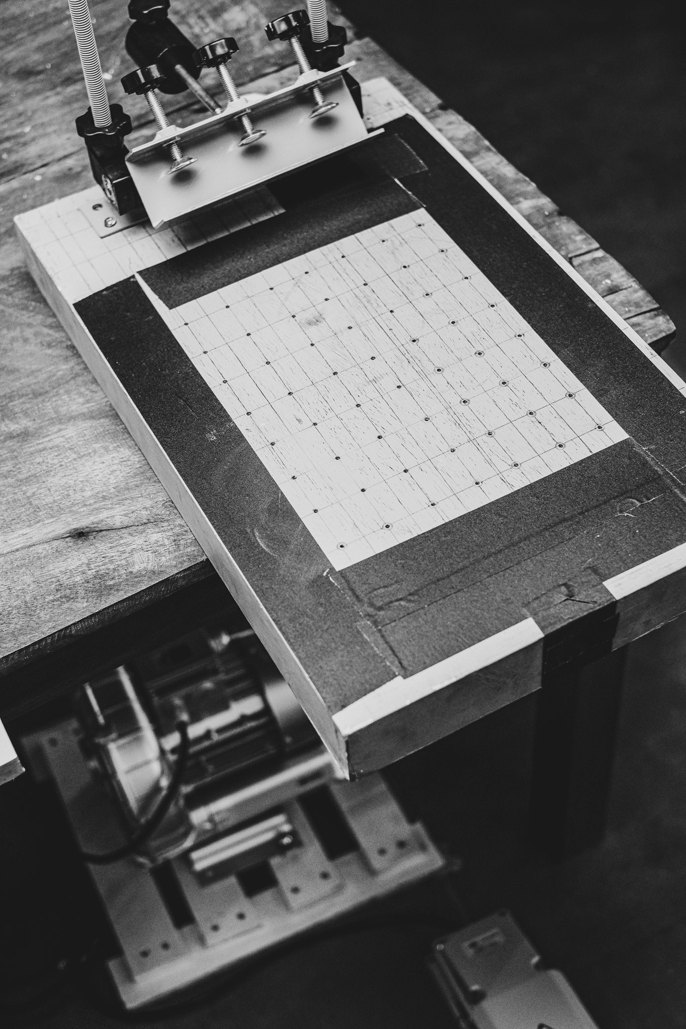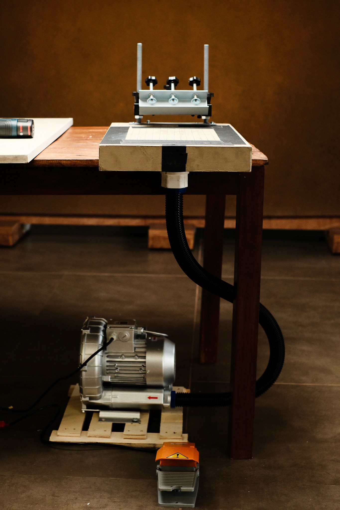 So we built a vacuum holding table. Nothing elaborate — a box, a perforated top, a small pump. It holds the sheet down just enough to behave. Solved one problem, made a few others more visible.
